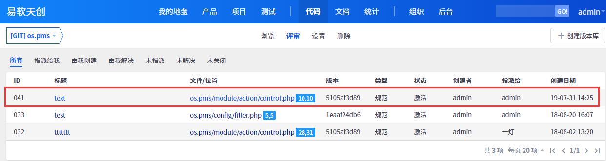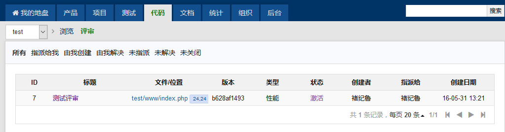 也可在代码--评审中查看。或者对应的产品--BUG列表内查看。