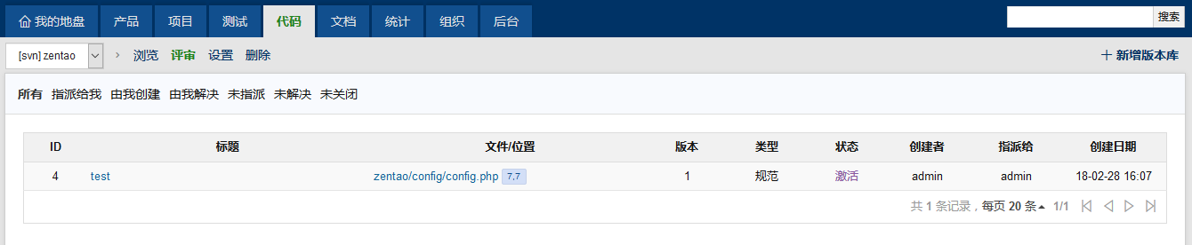 最新版本的禅道,进入代码视图,默认是需要先创建版本库。