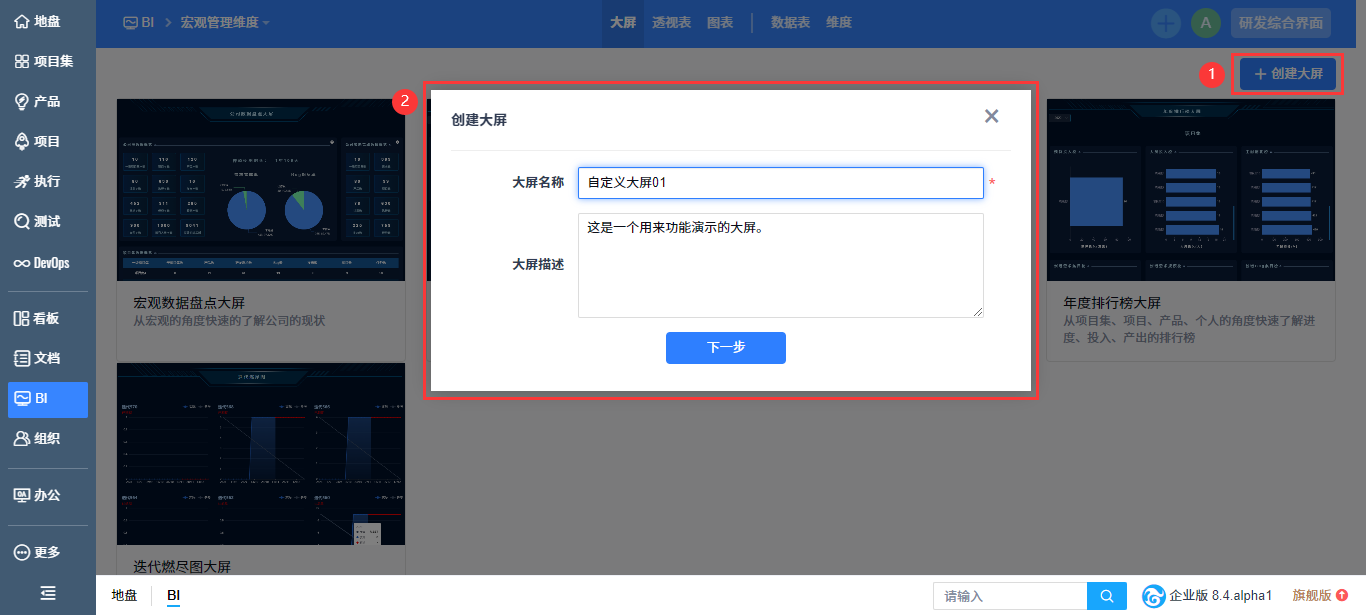 二、创建大屏(企业版)