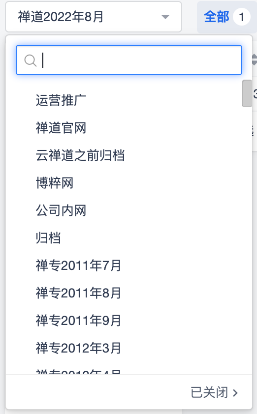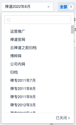 点击二级导航项目空间,进入项目空间首页,在这里默认会显示我参与的项目,可以查看其他项目。也可以选择查看已关闭的项目和无文档的项目。