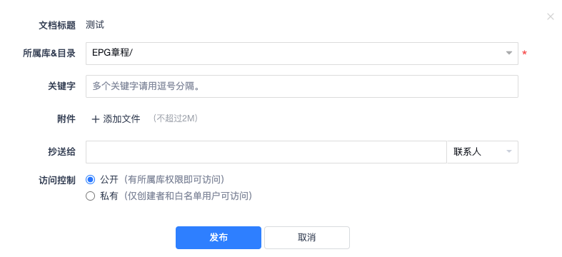 在创建库的弹窗中,支持创建Wiki文档库,可选择创建公开库和私有库。