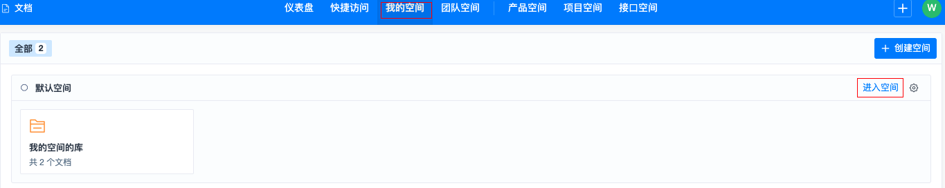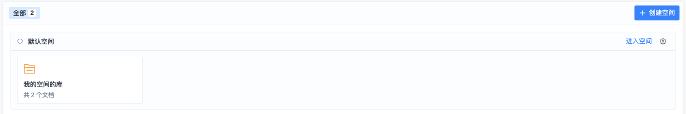 【20.8版本起】新增空间的概念,支持在我的空间下创建空间,新增我的空间首页,在我的空间首页中可以查看空间下所在的库,进入库后可以查看对应的库下的目录及文档。