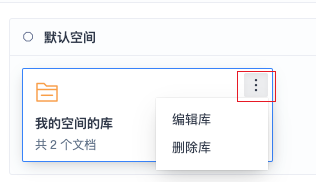 在空间首页,可以在卡片区域中的更多里编辑库和删除库。