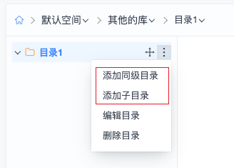 当已有一个目录时,在目录的右侧更多按钮中,添加同级目录或子目录。