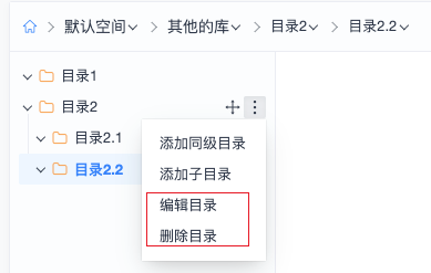 在目录的右侧更多按钮中,可以编辑目录或删除目录。