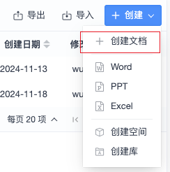 在创建库的弹窗中,仅支持创建Wiki文档库。