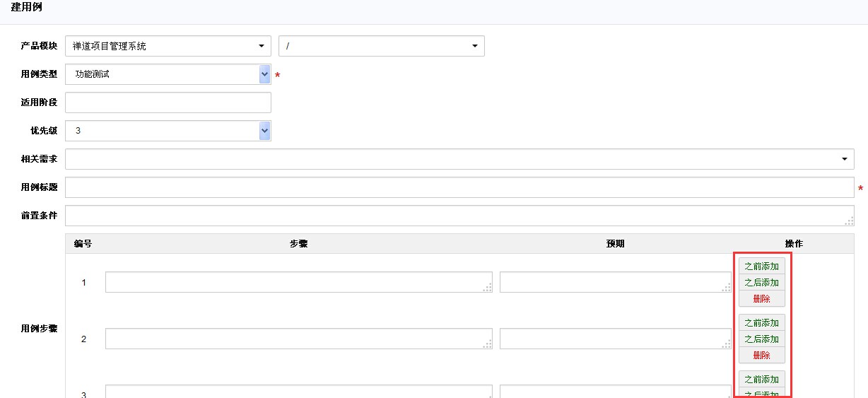 禅道中的测试用例,彻底的将测试用例步骤分开,每一个测试用例都由若干个步骤组成,每一个步骤都可以设置自己的预期值。这样可以非常方便进行测试结果的管理和Bug的创建。