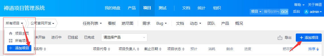 b.或者先进入所有项目页面,点击右侧的“添加项目”按钮。