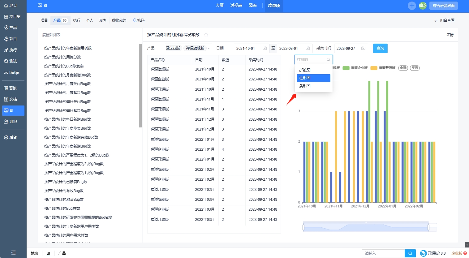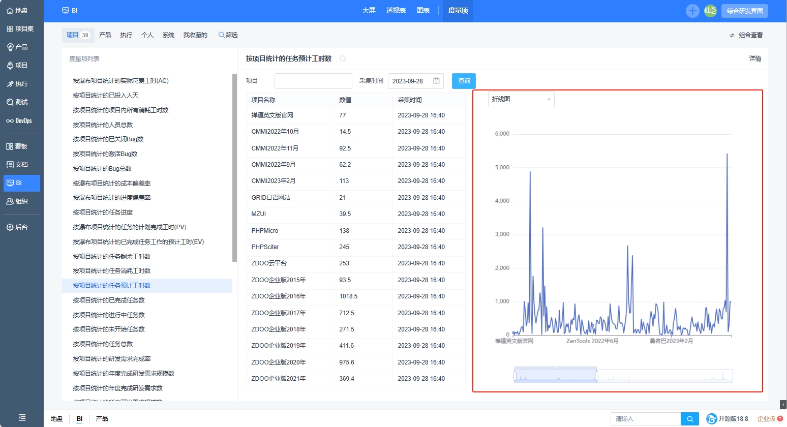 点击度量项列表中的某个度量项,可在右侧度量项展示区域查看度量项的可视化图表。