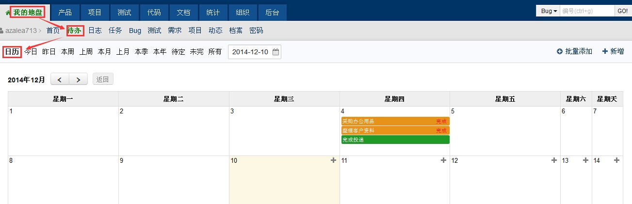 我的地盘-日程-待办(企业版功能,开源版也可以安装日历插件实现)