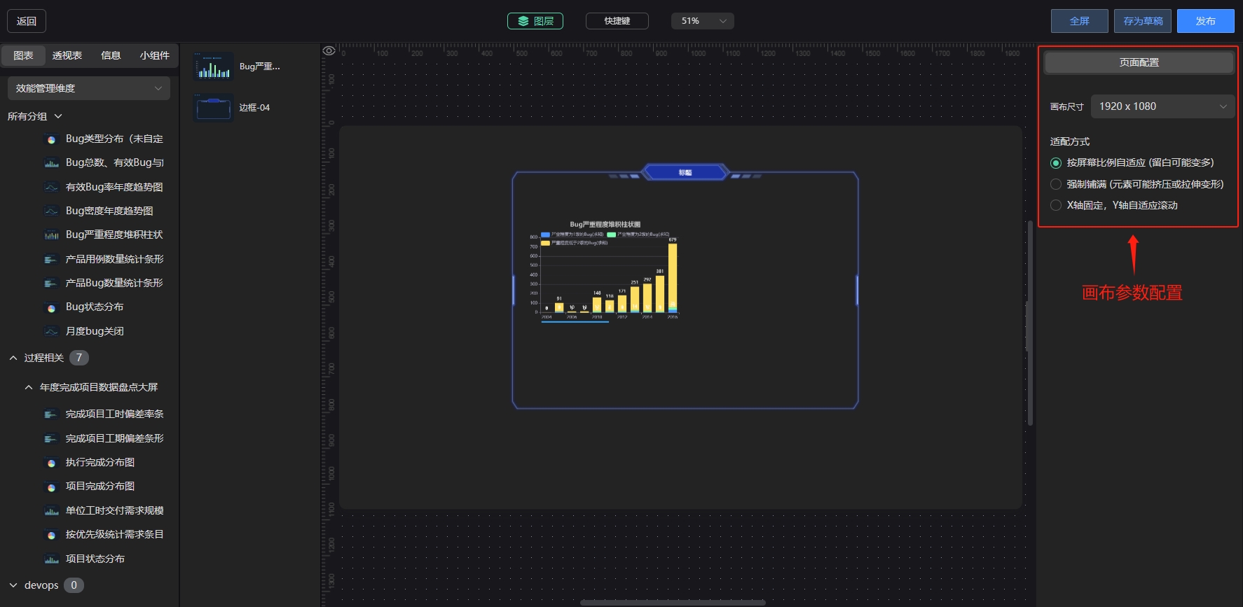 配置区域:对画布、图表、透视表、小组件等进行参数配置。