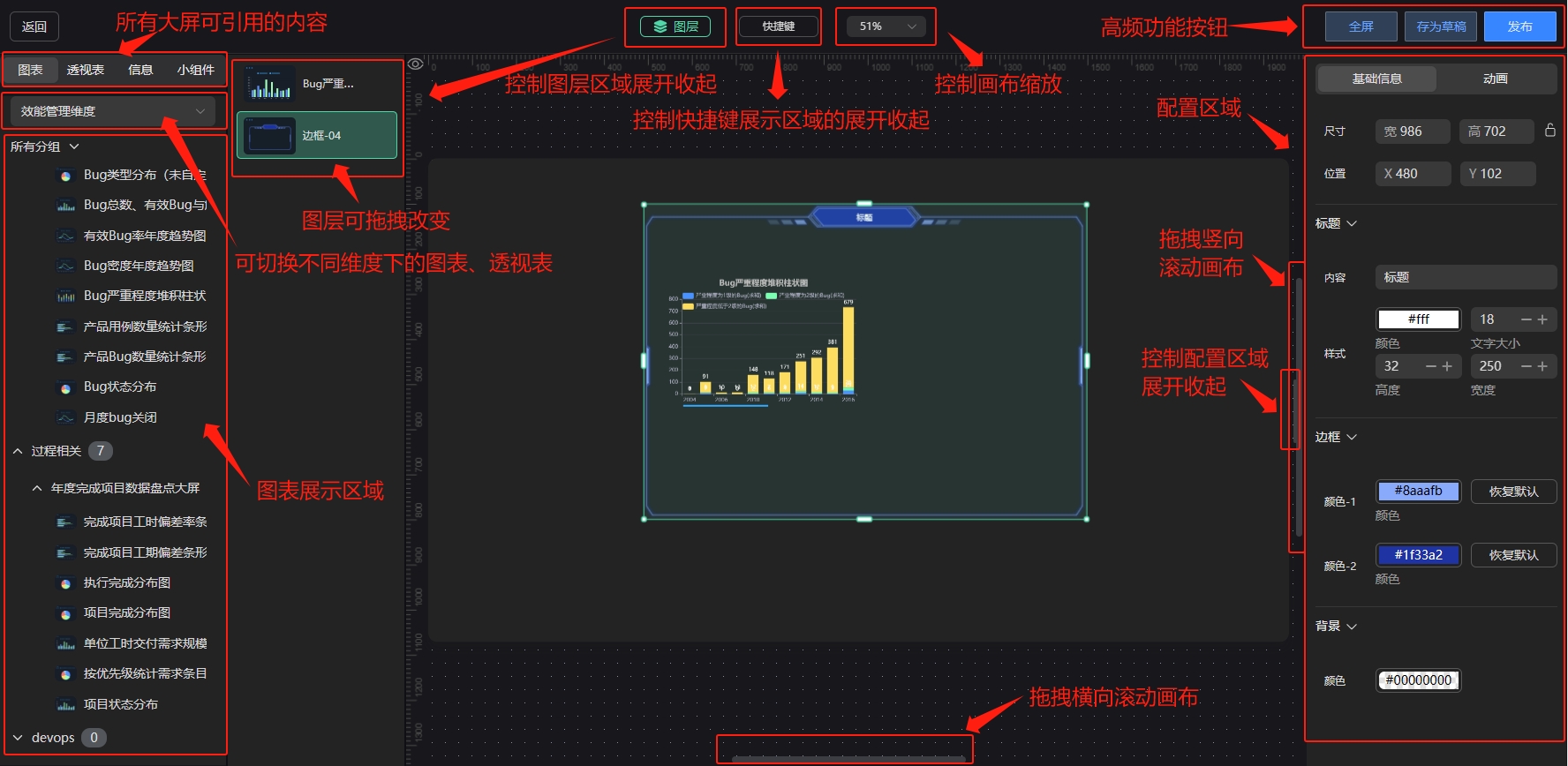 画布区域:大屏设计的展示。