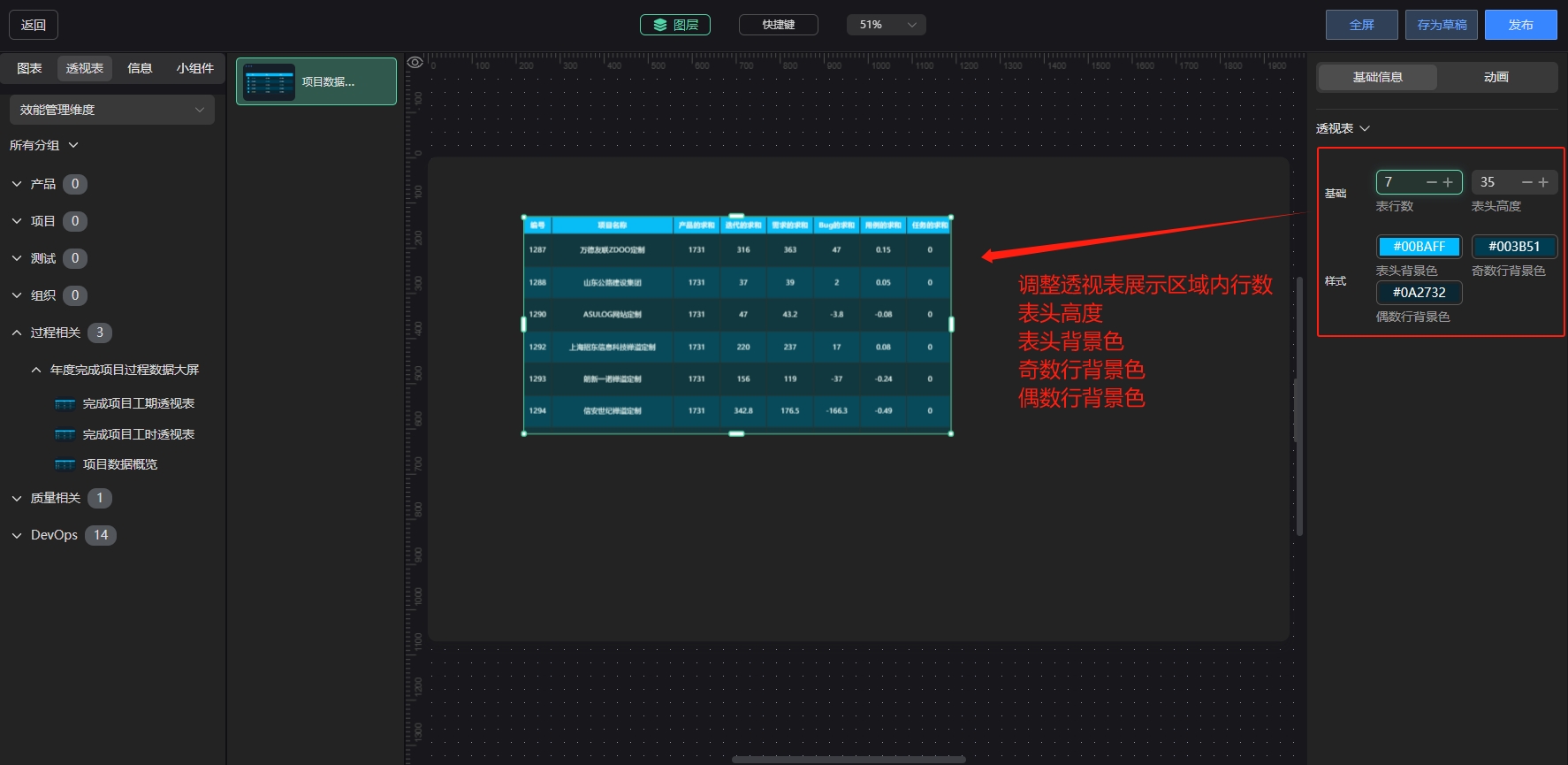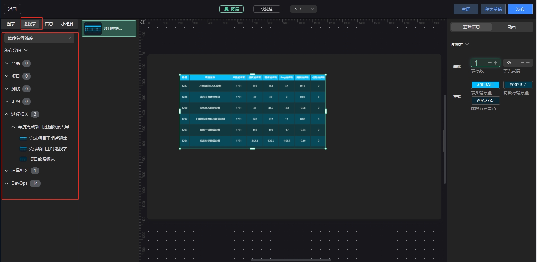 大屏设计器可以引用透视表模块中已经发布的透视表。