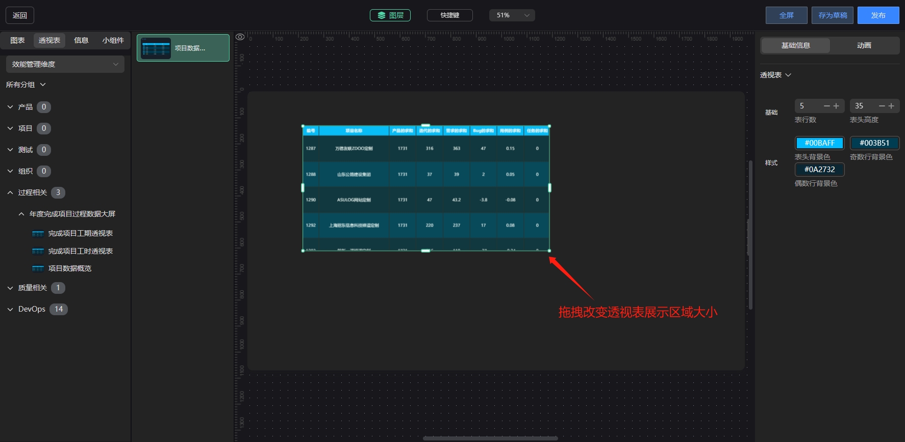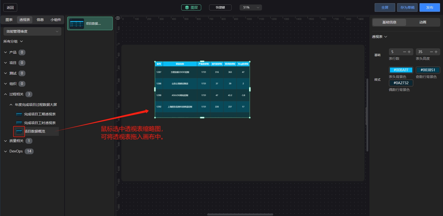 二、在大屏设计器中引用已发布的透视表。
