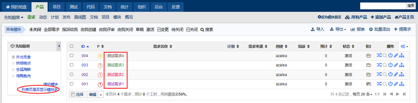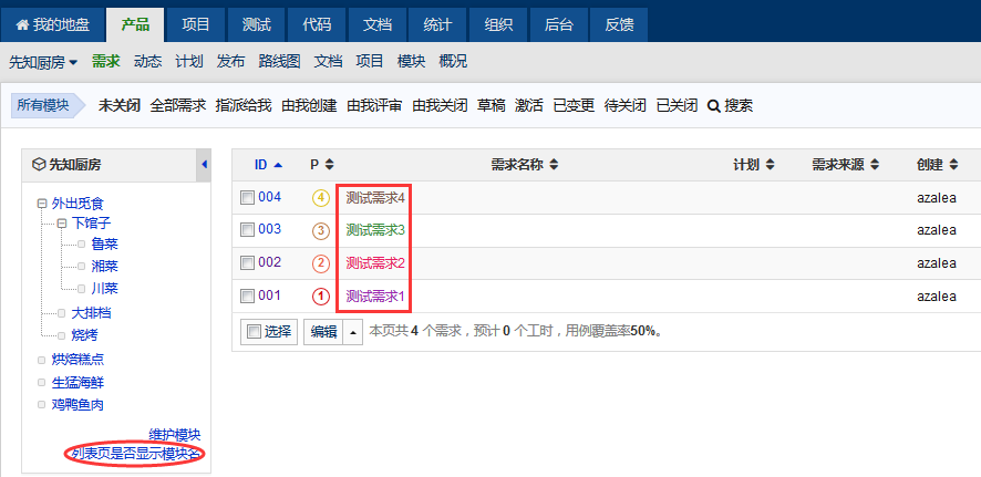 5、设置成功后,在需求列表页面需求的名称前即只显示最后一级模块的名称。