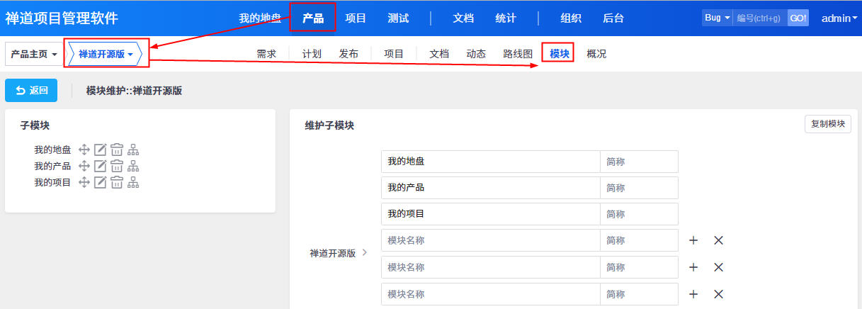 禅道从5.2.1版本开始,产品的模块可以同步到项目任务、测试Bug和用例里。