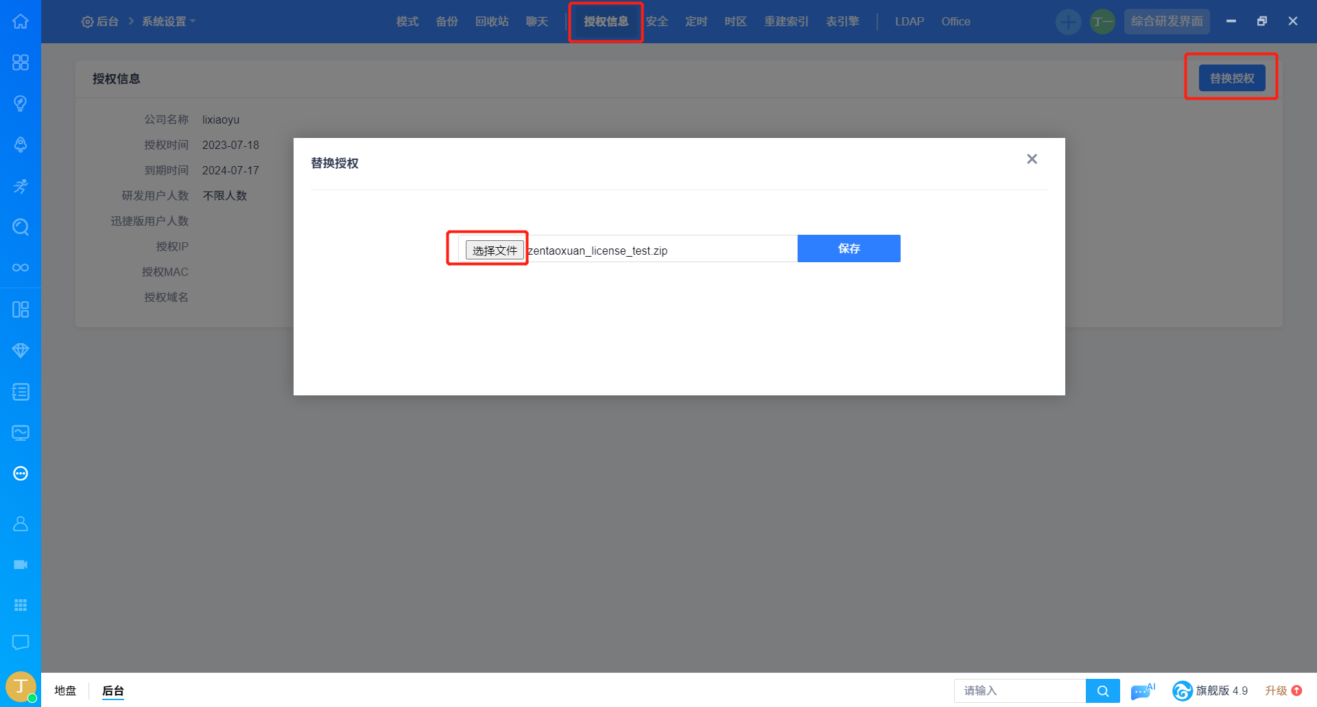 2. 上传授权文件。