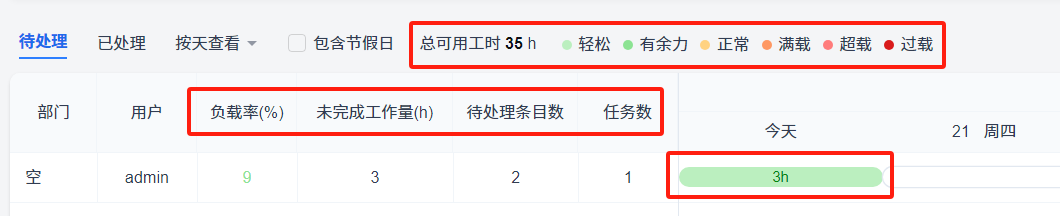 负载:未完成工作量/总可用工时。