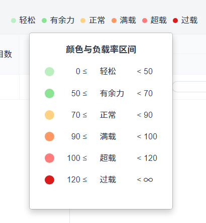 (4)颜色与负载率区间与资源日历页面一致。