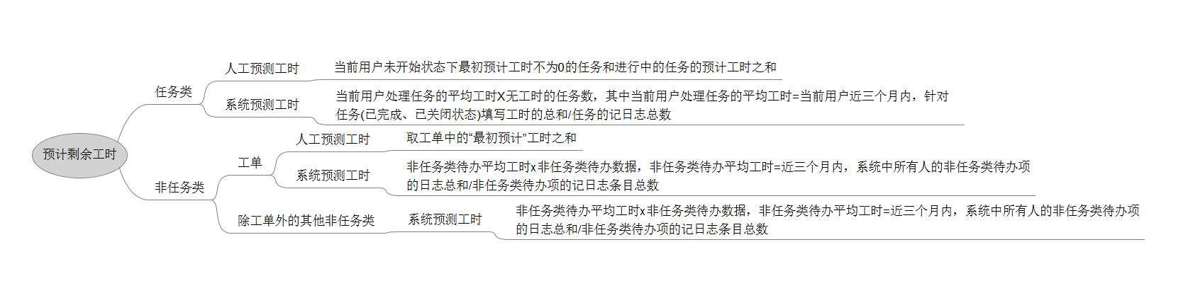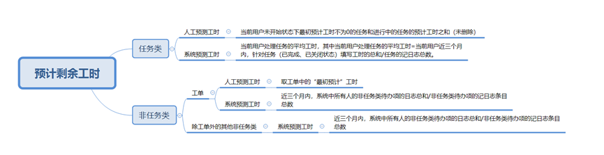 任务的人工预测工时:未开始任务的预计工时,进行中任务的预计剩余工时。