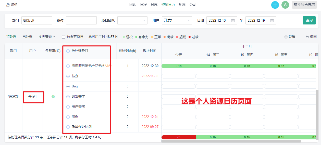5. 点击用户名,可进入个人资源日历页面。