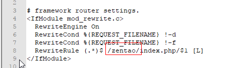如果访问禅道有二级目录,需要修改重写规则,位置:zentaopms/www/下面的 .ztaccess 和 .htaccess