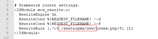 例如访问网址是: http://www.zentao.com/zentaopms/www 2个access文件中的内容需要改成: