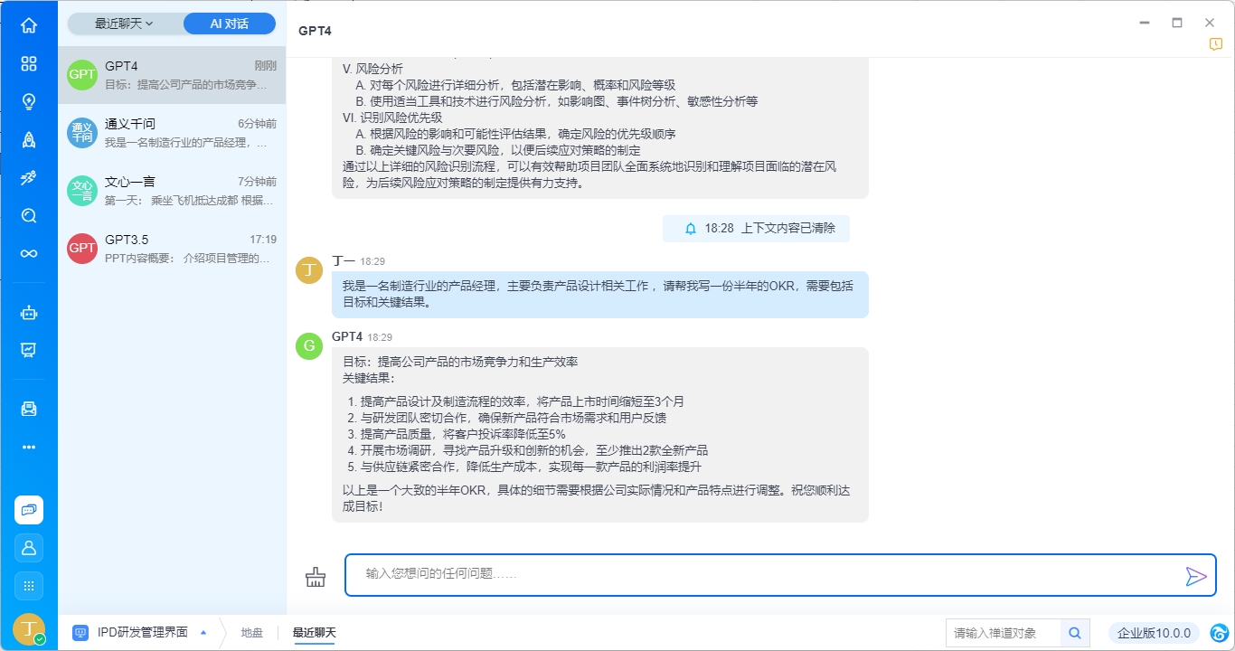 - 对话过程中清除上下文可重置对话状态。