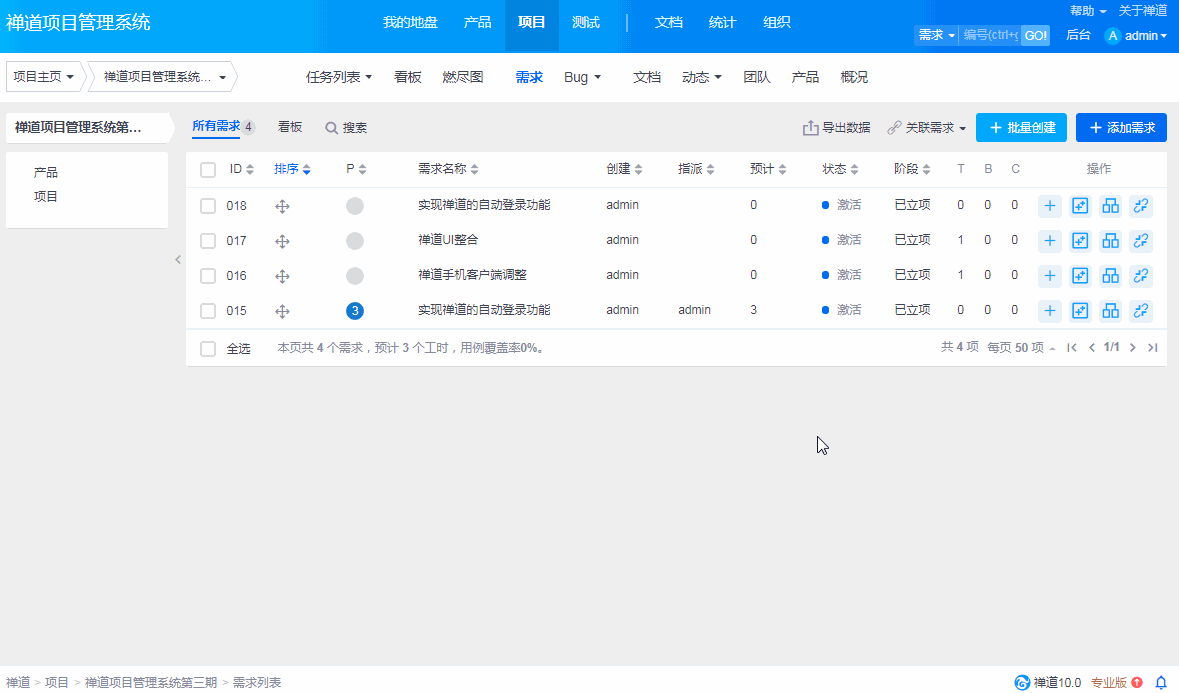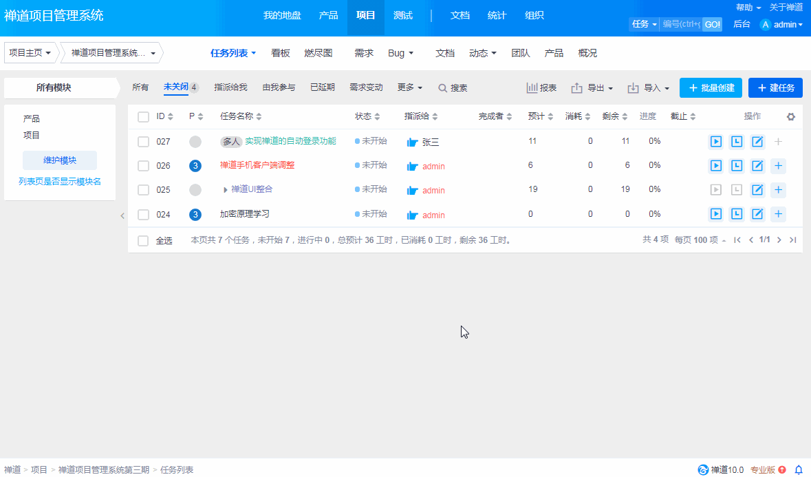 - 5.2.3 新版本禅道的最简使用