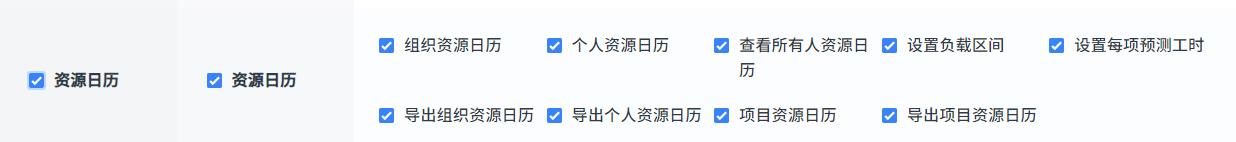 可以到后台-人员-权限-资源日历位置分配项目资源日历的权限。也可以在项目权限下配置单个项目的资源日历权限。