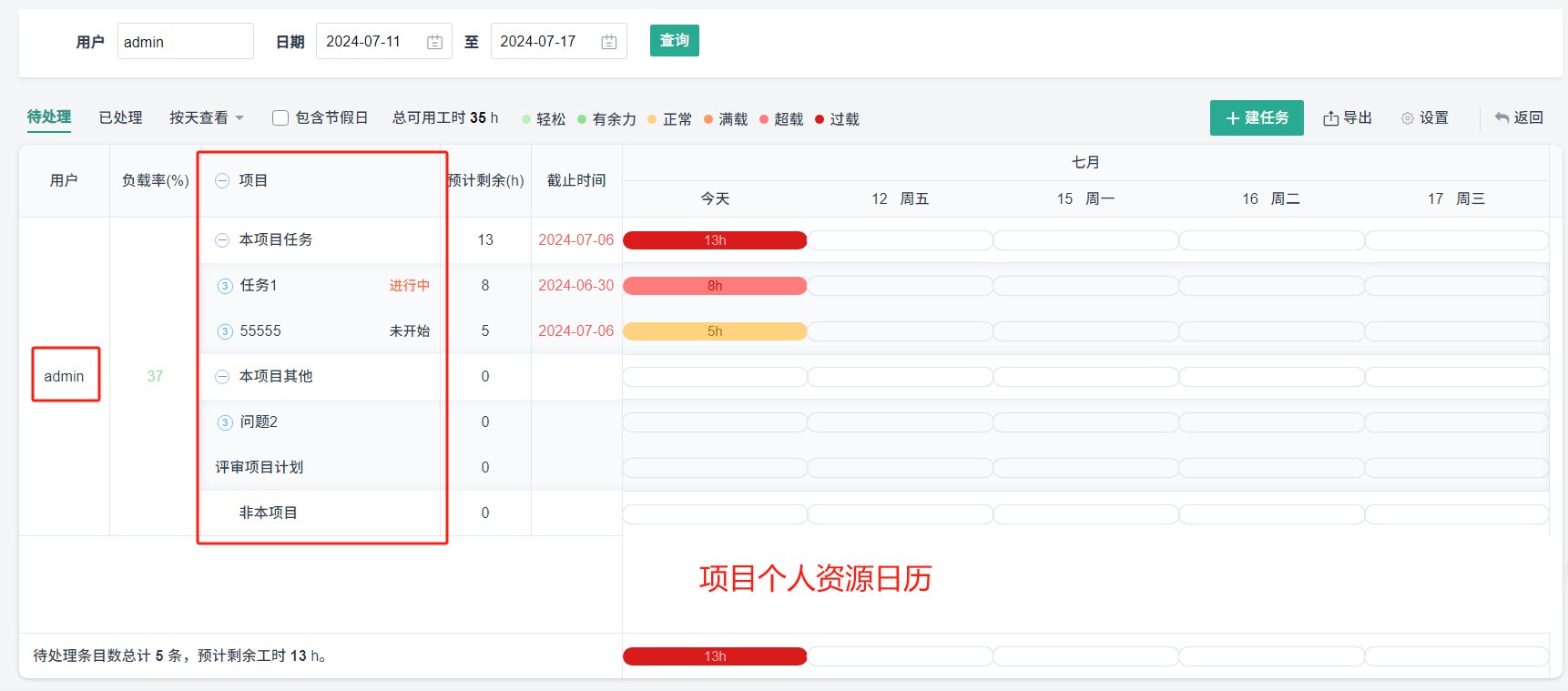 1. 待处理资源日历中的数值