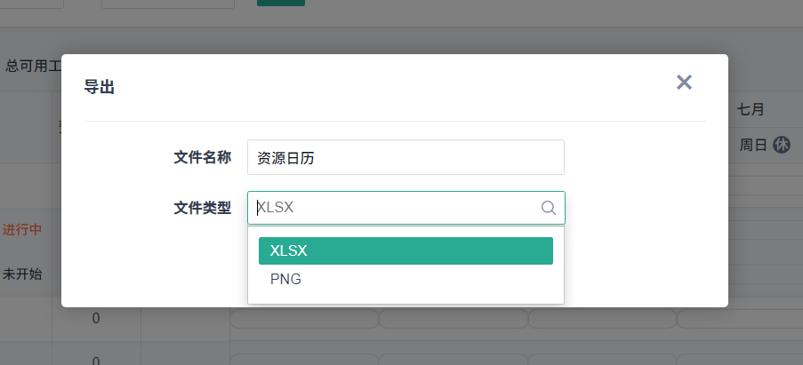 在资源日历页面点击【导出】进入导出页面,支持excel和图片两种格式。