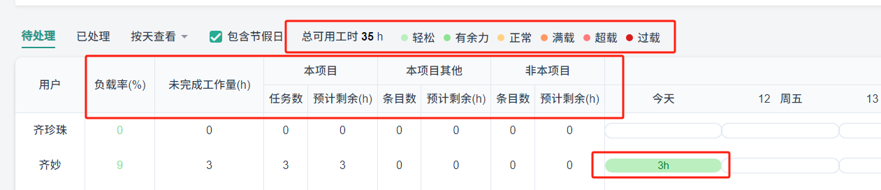 负载:未完成工作量/总可用工时。