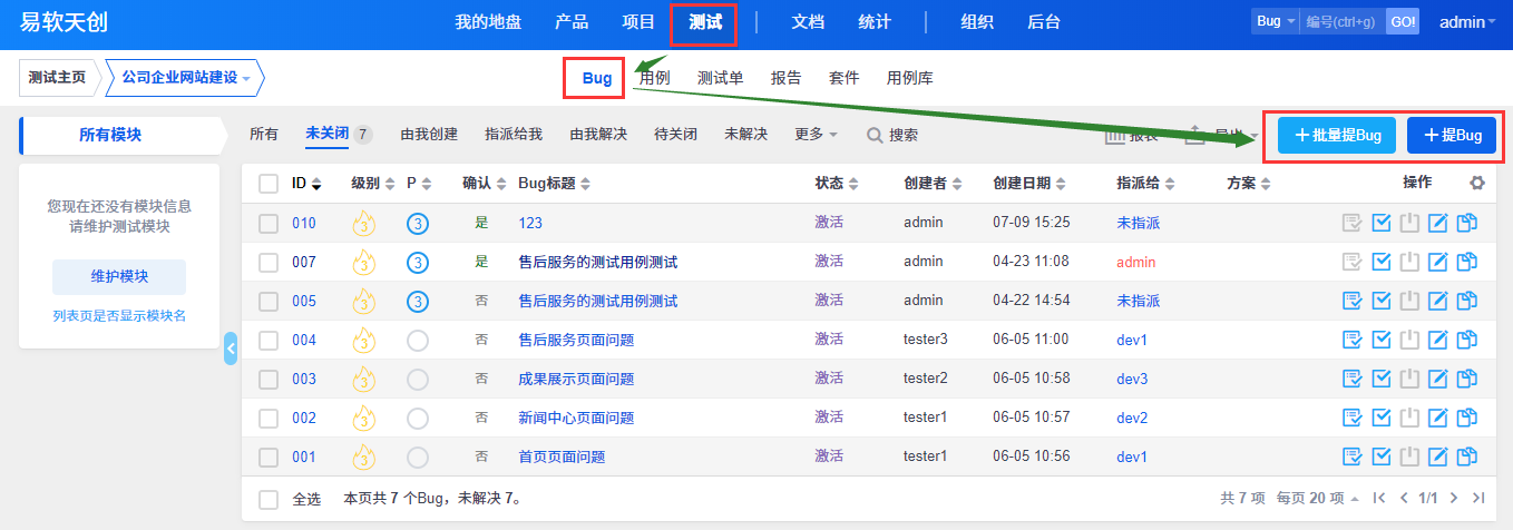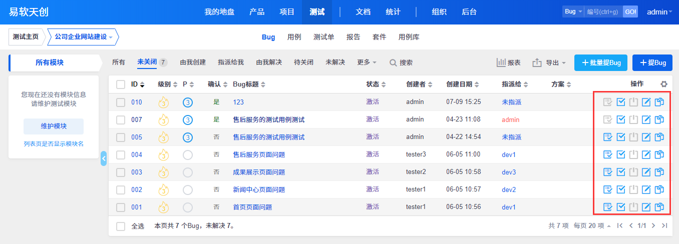 - 7.5.3.4 维护项目的Bug、用例、测试单、测试报告