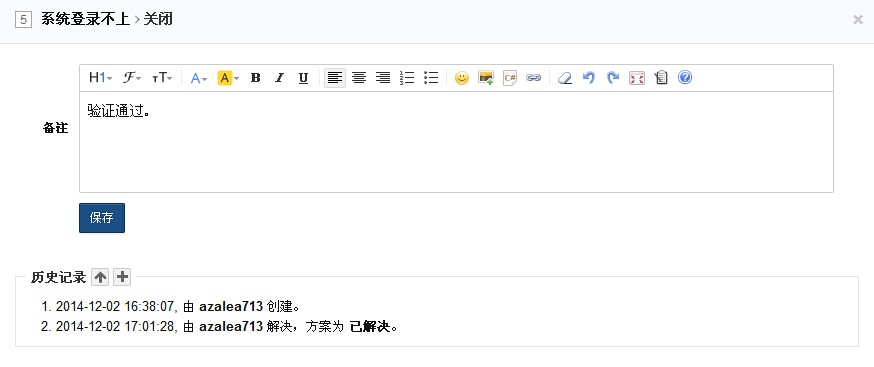 解决bug:当bug修复解决后,点击解决,指定解决方案、日期、版本,并可将其再指派给测试人员。