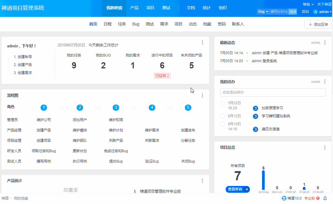 - 5.1.1 禅道使用的基本流程和产品、研发、测试之间的三权分立