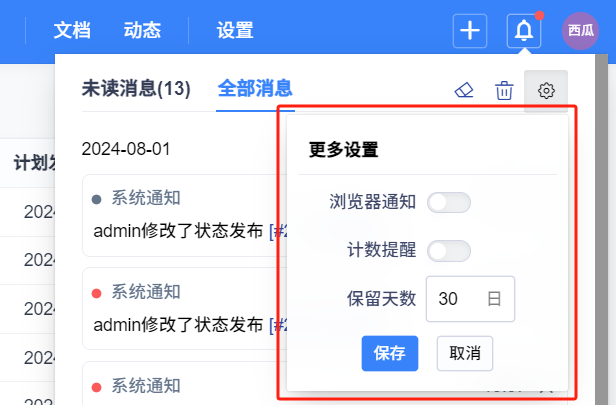 - 系统通知关闭后,所有人都会隐藏右上角的消息按钮。
