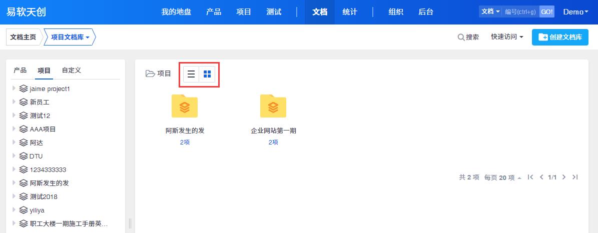 文档库里的文档支持2种浏览方式:默认的列表显示和类Windows目录。