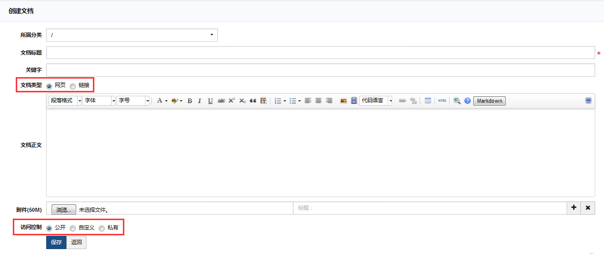 创建文档可以设置文档的访问权限。