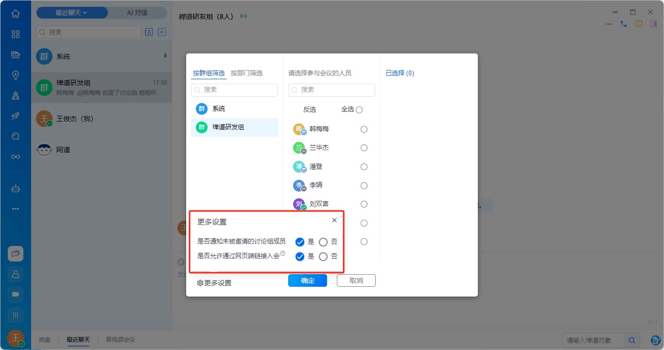1. 点击更多按钮中的“邀请其他人”按钮或点击成员列表上方的“邀请其他人”按钮,选择想要邀请的用户即可成功邀请。