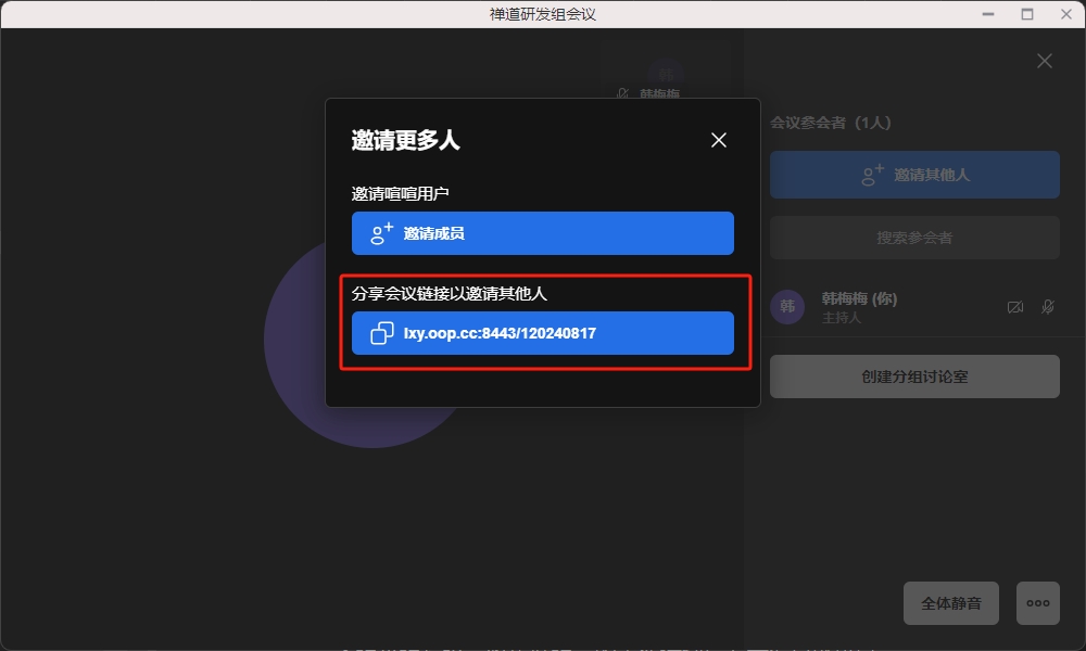 2. 复制生成的会议链接,通过电子邮件、即时通讯工具或其他通讯方式将链接发送给受邀成员。
