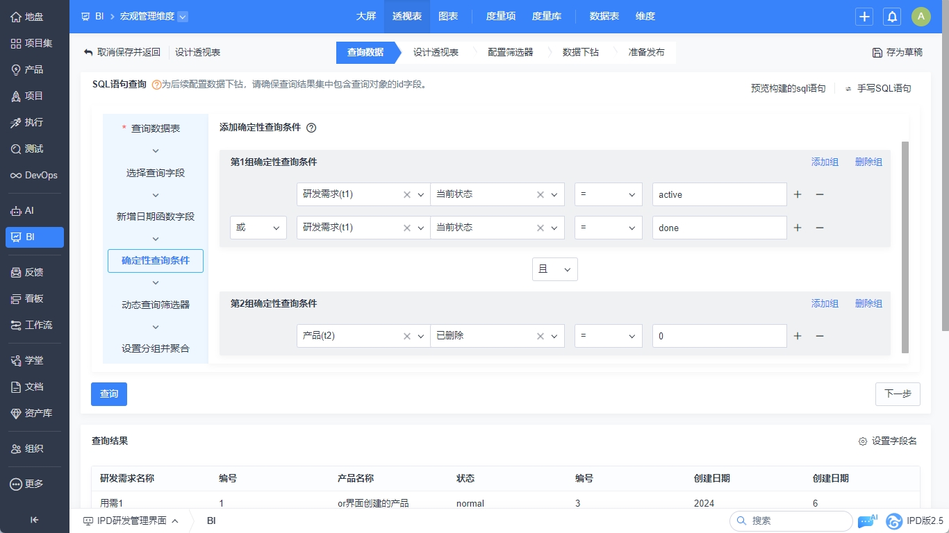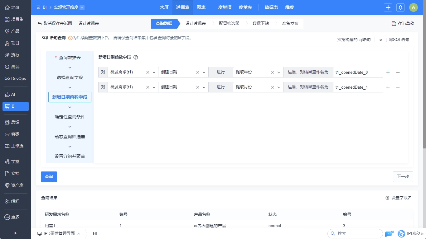 BI的图表、透视表和中间表的设计器中,增加SQL构建器的功能,用户可以通过SQL构建器实现SQL语句的轻松构建。