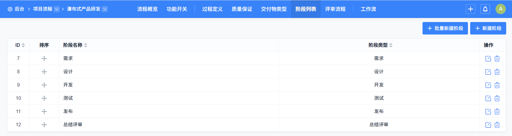 添加阶段,点击新建、批量新建的按钮可以进入添加阶段页面。