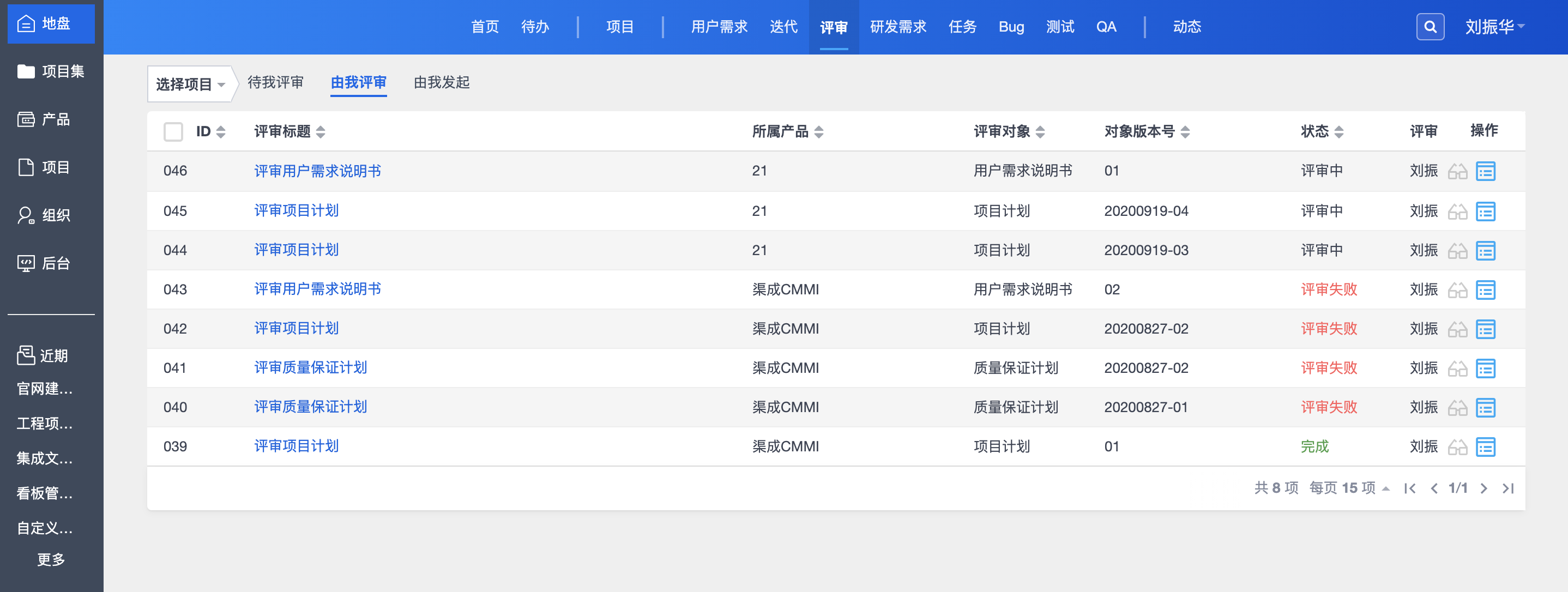 点击列表中的操作按钮,对需求进行评审、变更、关闭等操作,快捷完成待处理的事务。