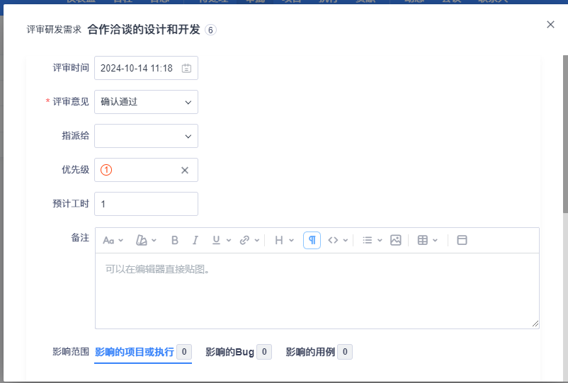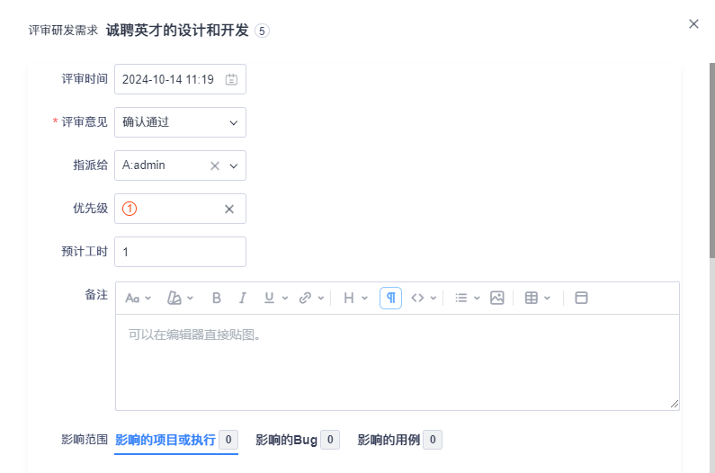 填写评审表单,评审完成后,该需求从审批列表中移走。