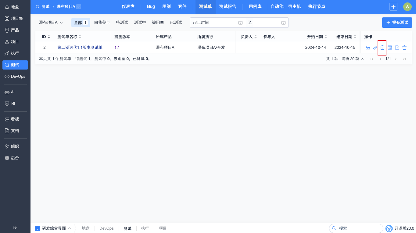 测试单是项目管理系统中用于记录和管理测试用例执行情况的重要工具。它帮助测试人员有效地组织和跟踪测试任务,确保软件产品的质量。通过测试单,测试团队能够系统化地管理测试过程,从而提高测试效率和准确性。