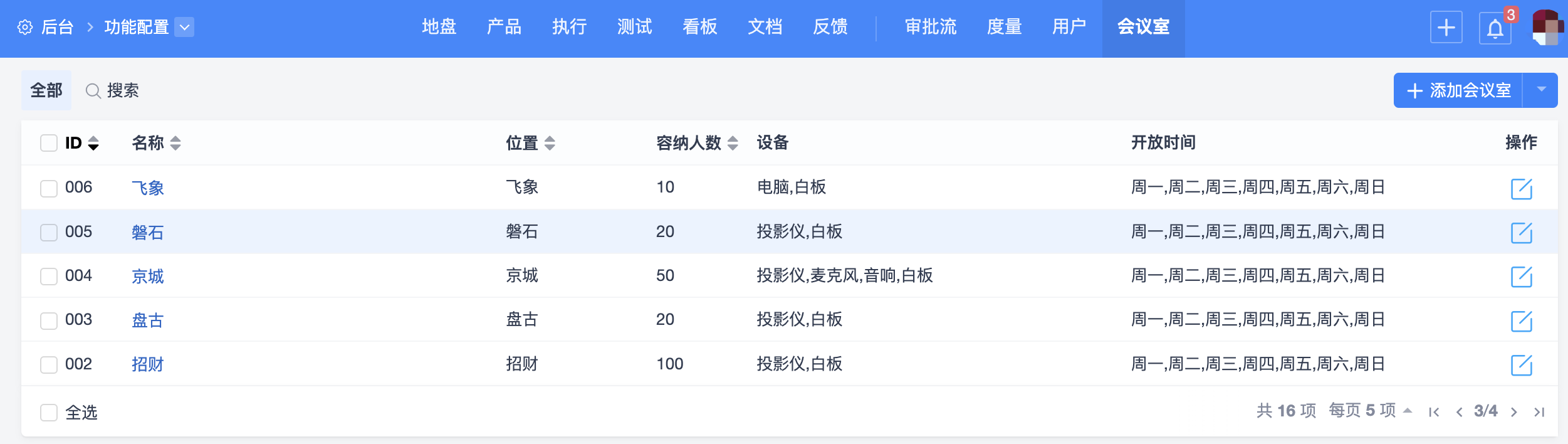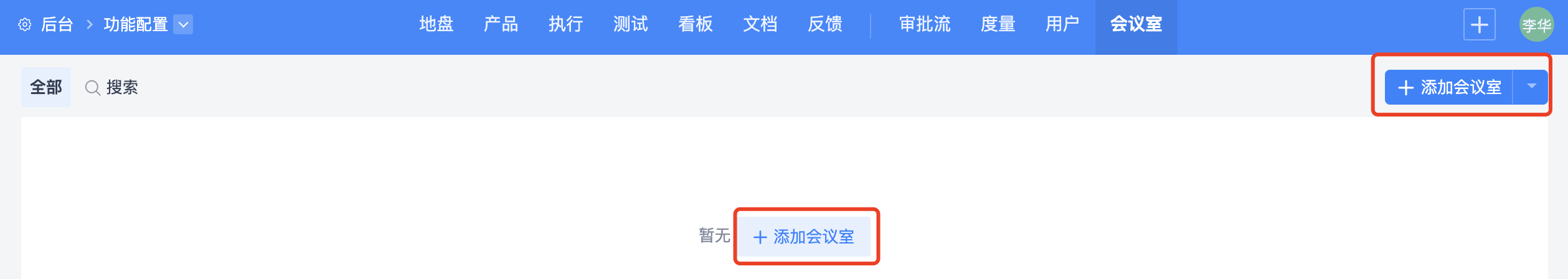 在创建会议之前,需要去“后台”--“功能配置”--“会议室”添加会议室。