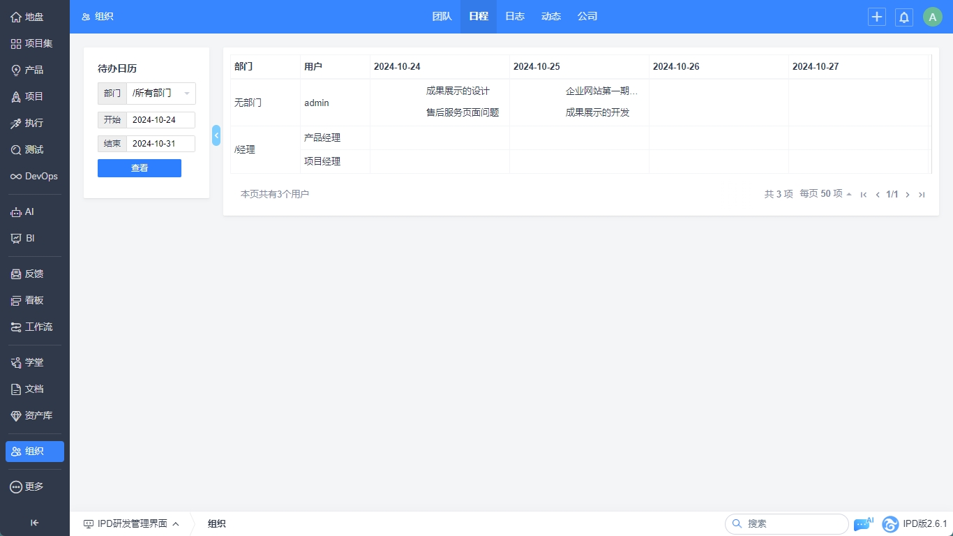 组织-日程展示的是所有用户地盘-日程中的日程安排。