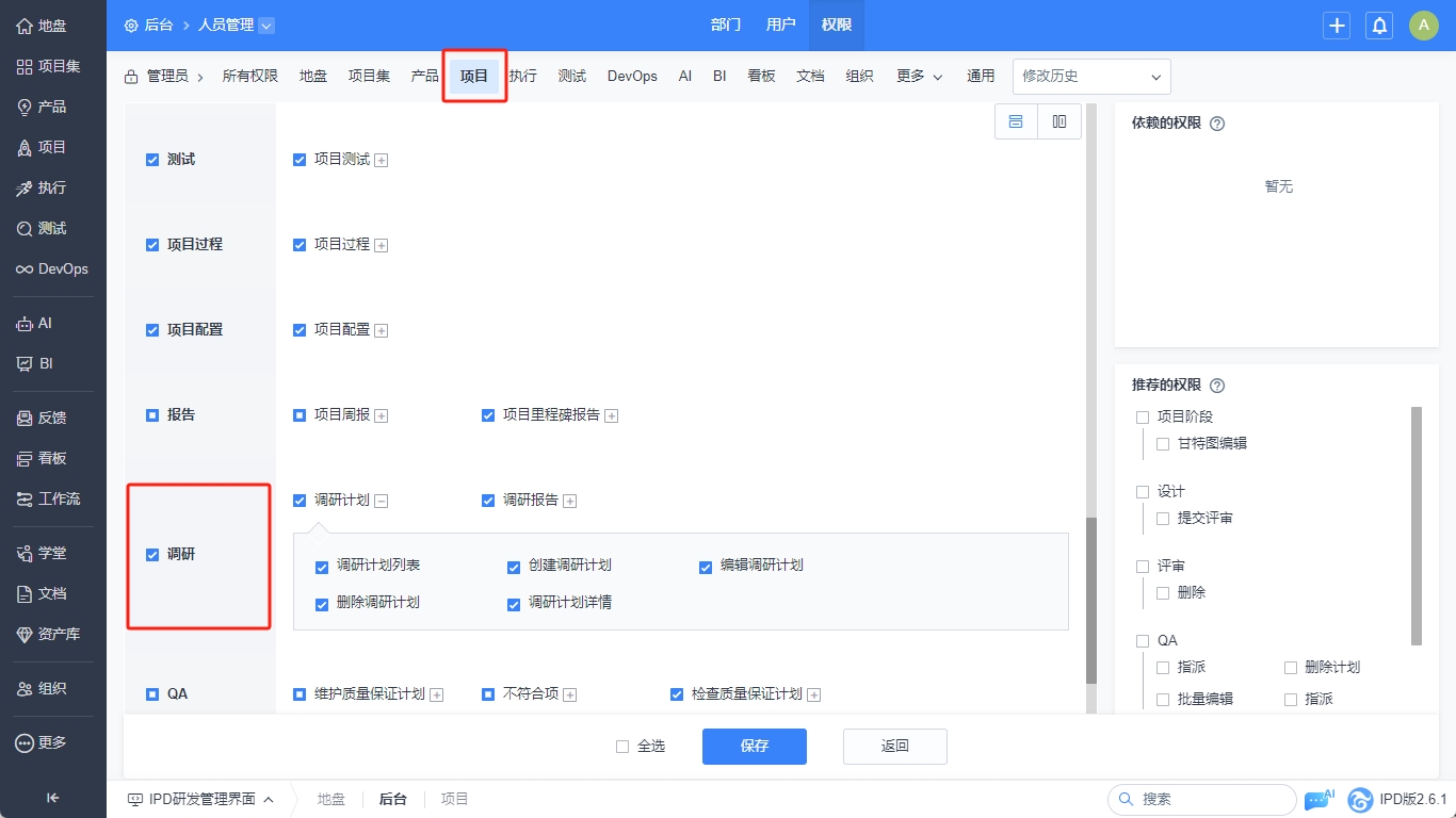 在开始使用这些功能之前,你需要去“后台”--“人员”--“权限”中,设置用户的相关权限。