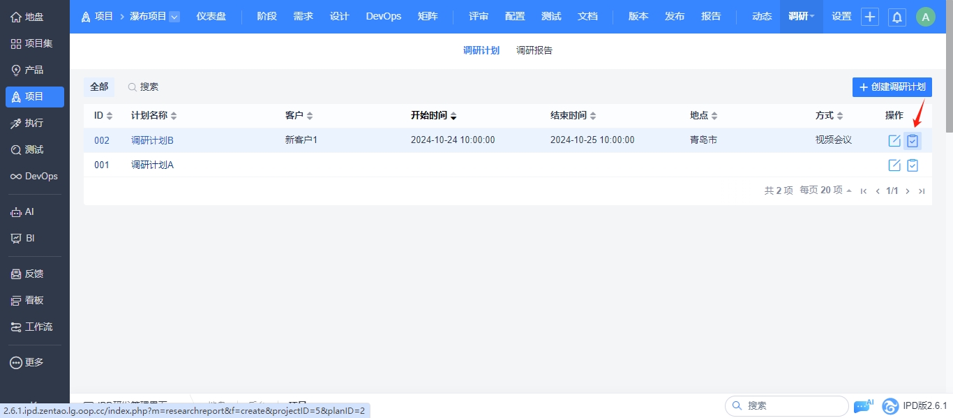 如果该调研计划已创建了调研报告,点击操作按钮“调研报告详情”,可以查看计划相关联的调研报告。